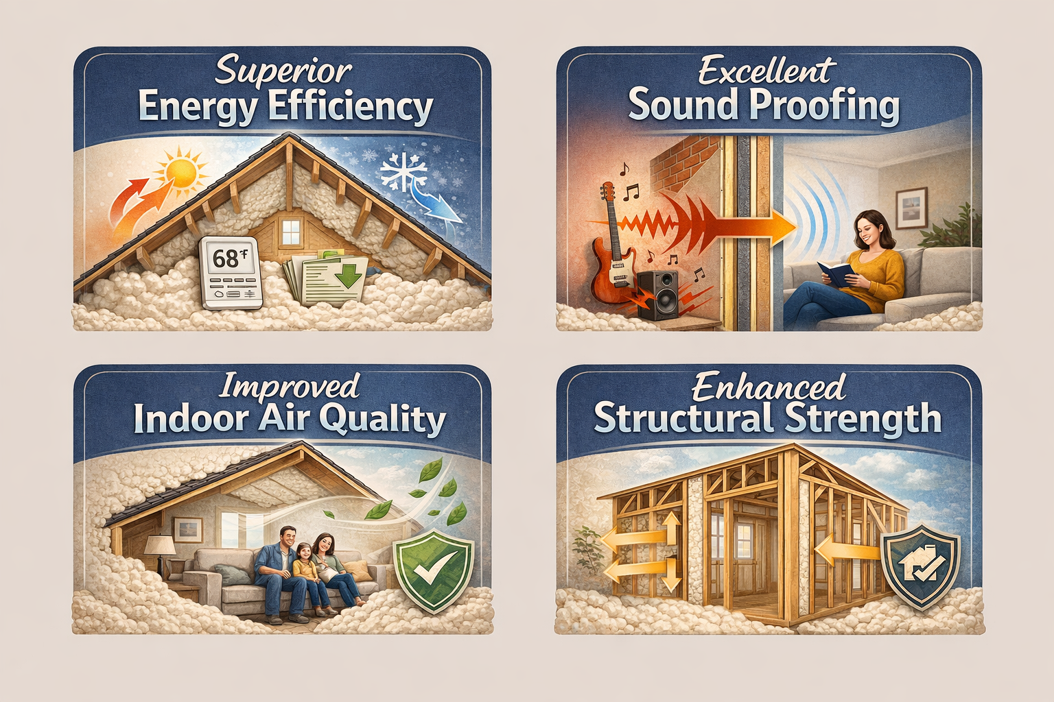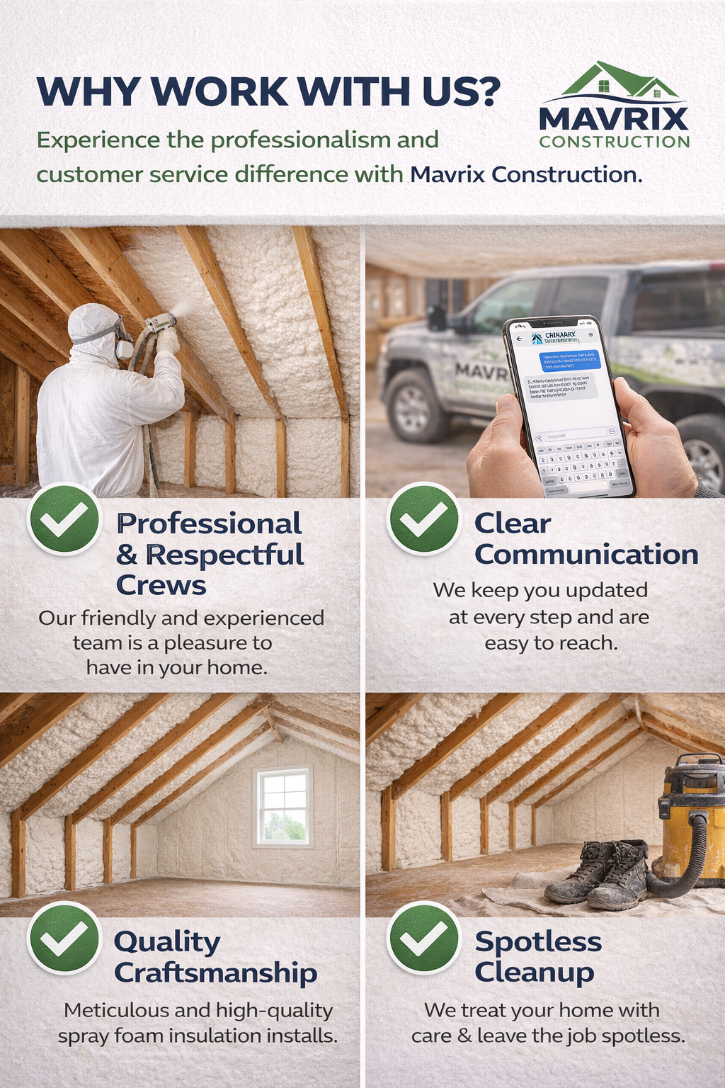 Upgrade your home’s comfort and efficiency with professional spray foam insulation. Our high-performance insulation expands to seal gaps, cracks, and hard-to-reach areas, creating an airtight barrier that helps keep warm air in during winter and hot air out during summer. This improved air sealing can significantly reduce energy loss, helping homeowners lower their heating and cooling costs by up to 20–40% while maintaining more consistent indoor temperatures year-round. In addition to energy savings, spray foam insulation also improves indoor air quality, reduces moisture intrusion, and adds long-lasting durability to your home’s insulation system.